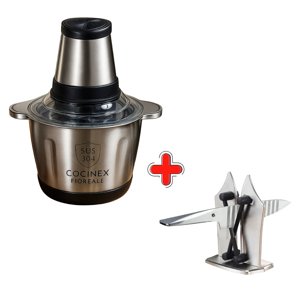 Triturador/Moedor de Alimentos Elétrico COCINEX FIOREALE™ 2L – Potente, rápido e fácil de utilizar. Pica, mistura e mói carne, legumes e muito mais em segundos. Fabricado em aço inoxidável , compacto, durável e perfeito para uso doméstico ou em pequenas empresas.