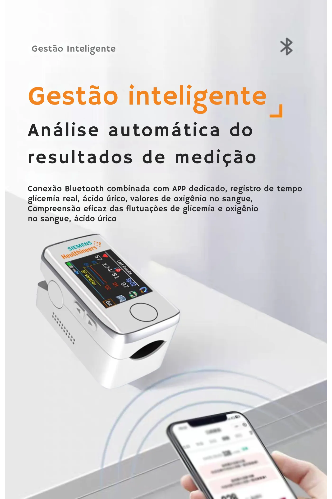 Como profissional de saúde, recomendo o Oxímetro Siemens™ , que procura monitorizar a saúde de forma segura e precisa .